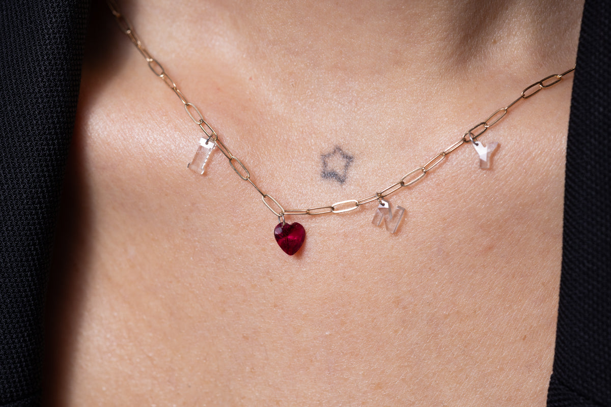 made in NYC with pierced lab-diamond letters on 14k gold chain