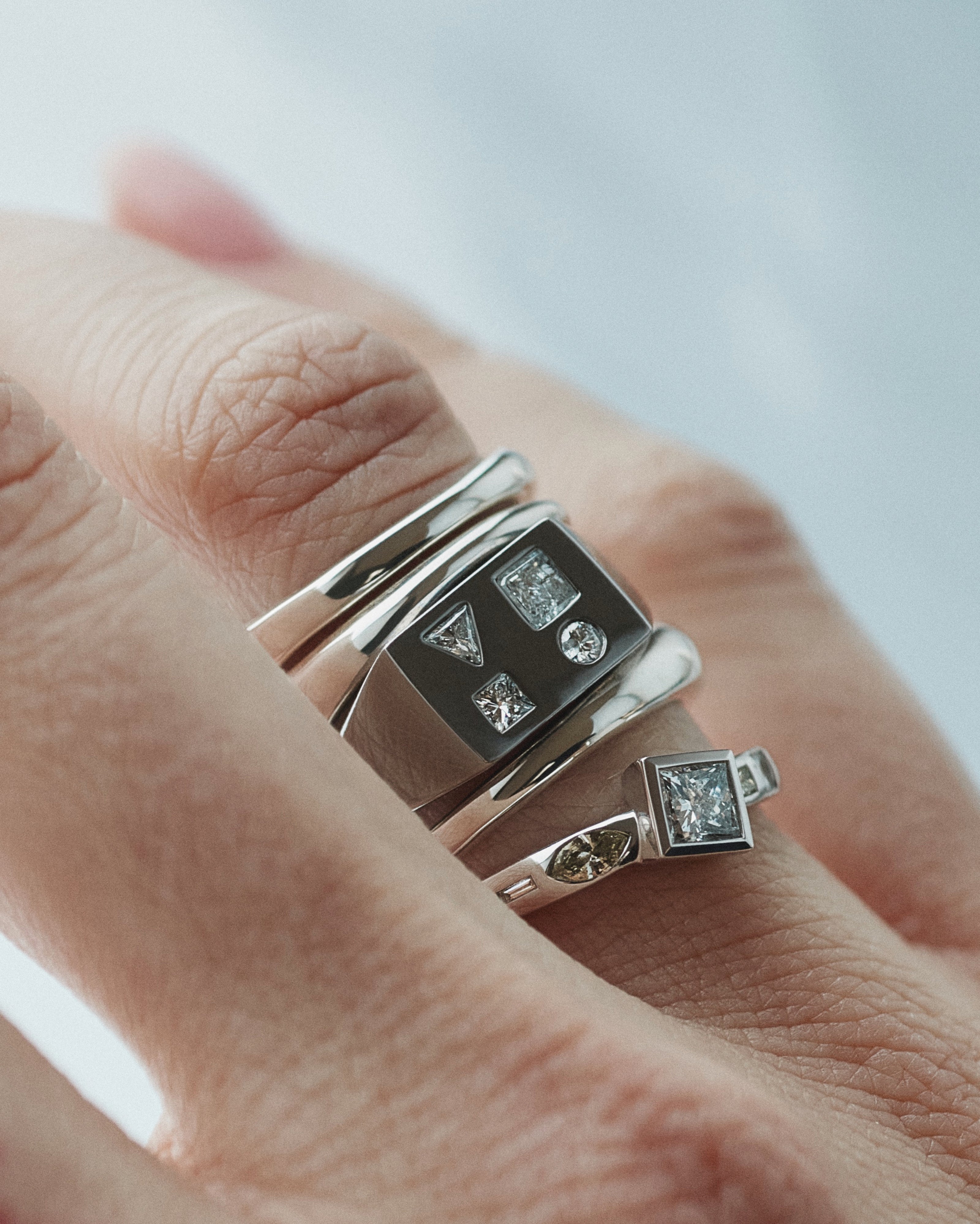 handmade in NYC with reclaimed broken and in-tact diamonds