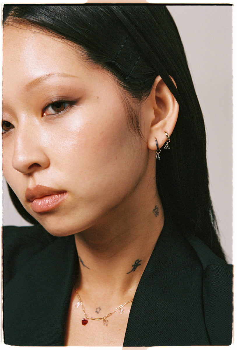 Whether you prefer a single earring with your favorite initial, or multiple to spell out your favorite word, the Diamond Letter Huggies are the perfect statement earrings for everyday wear.