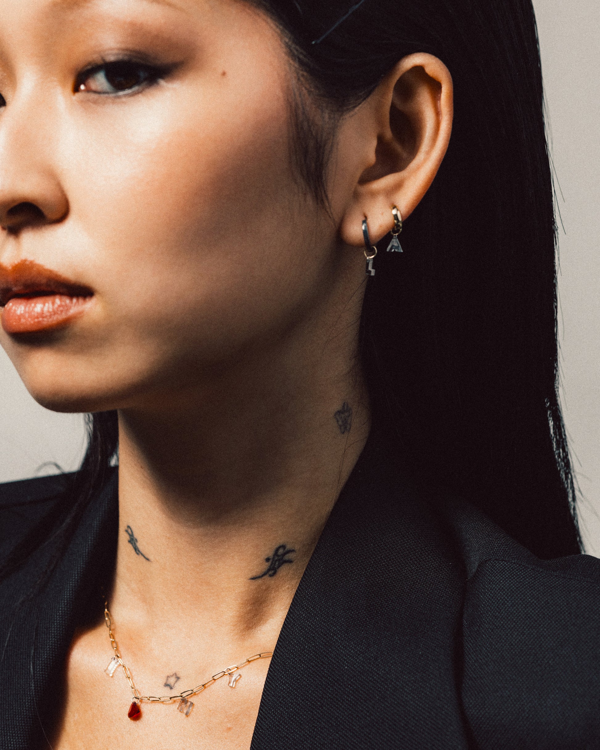 Solid diamond letters and a heart spell out I <3 NY on a solid 14k gold chain.