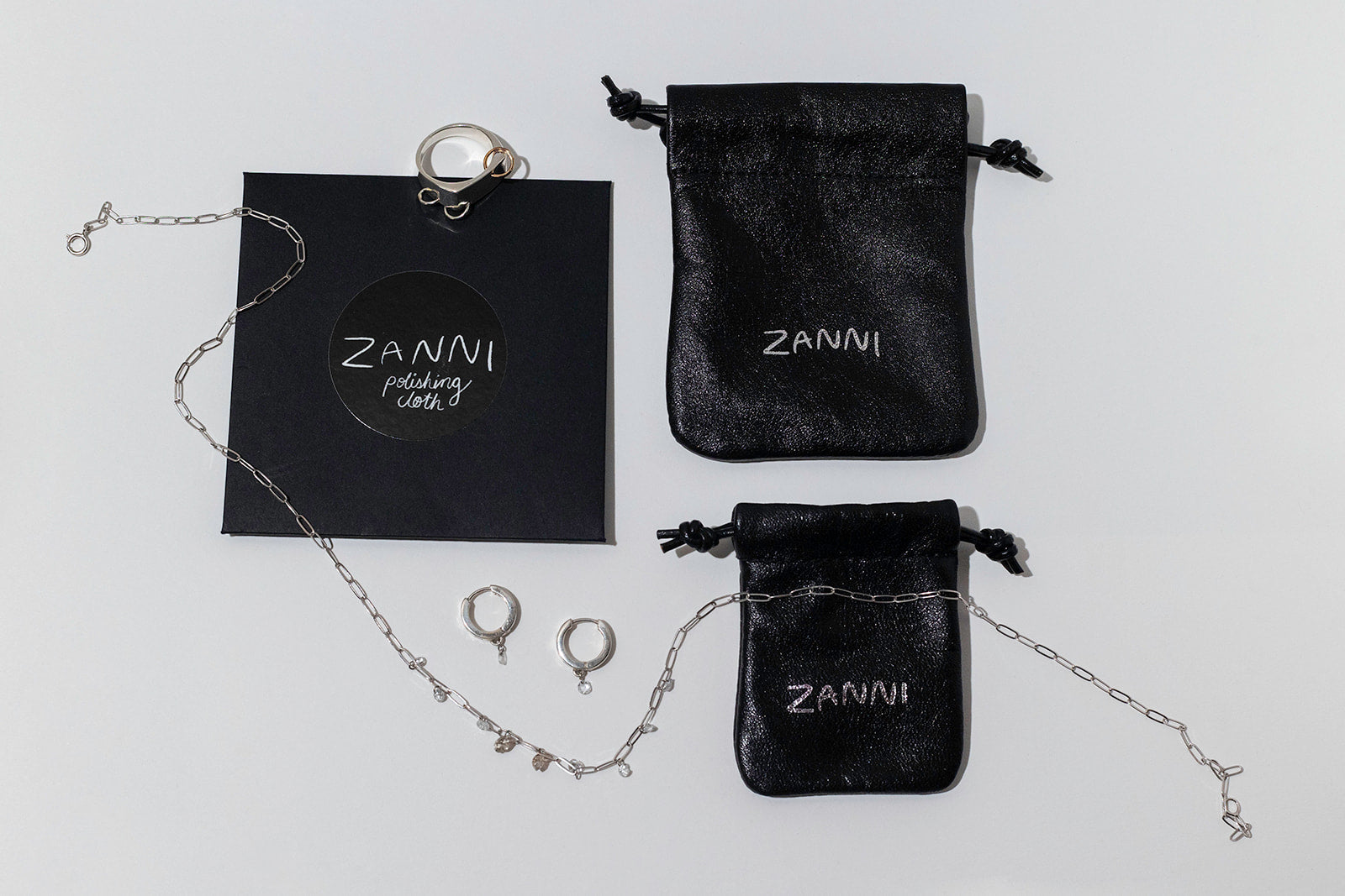 Unwrapping your gift should feel just as special as the piece inside. Our branded leather pouches are crafted from sustainable surplus leather and ethically handmade in Canada. They’re designed to protect your ZANNI jewelry, keeping rings from scratching and chains from tangling.