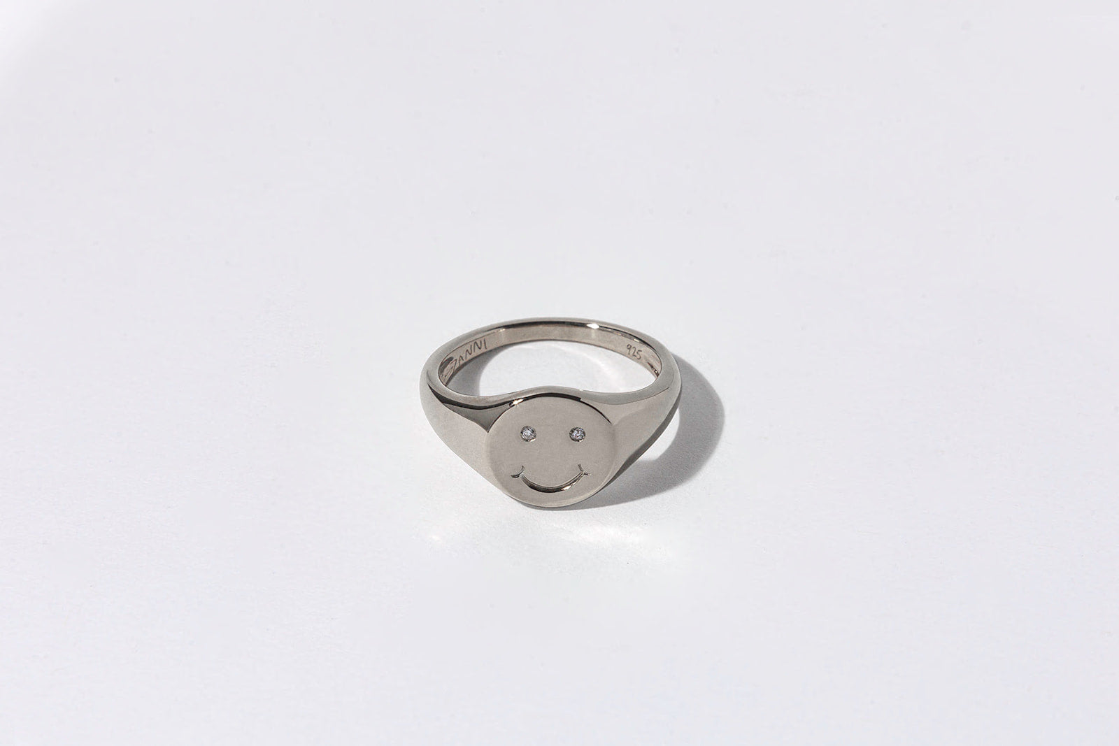 Combat your RBF with the the Smile Signet Ring. Adorned with a hand-engraved face, this ring will bring you positive vibes even when you don't feel like smiling.